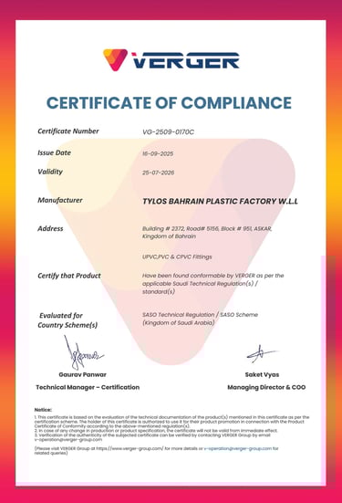 تقدم مصانع تايلوس مجموعة متكاملة من وصلات PVC – CPVC – UPVC – HDPE بجودة عالية لتلبية متطلبات شبكات المياه، الصرف الصحي، والأنظمة الصناعية.